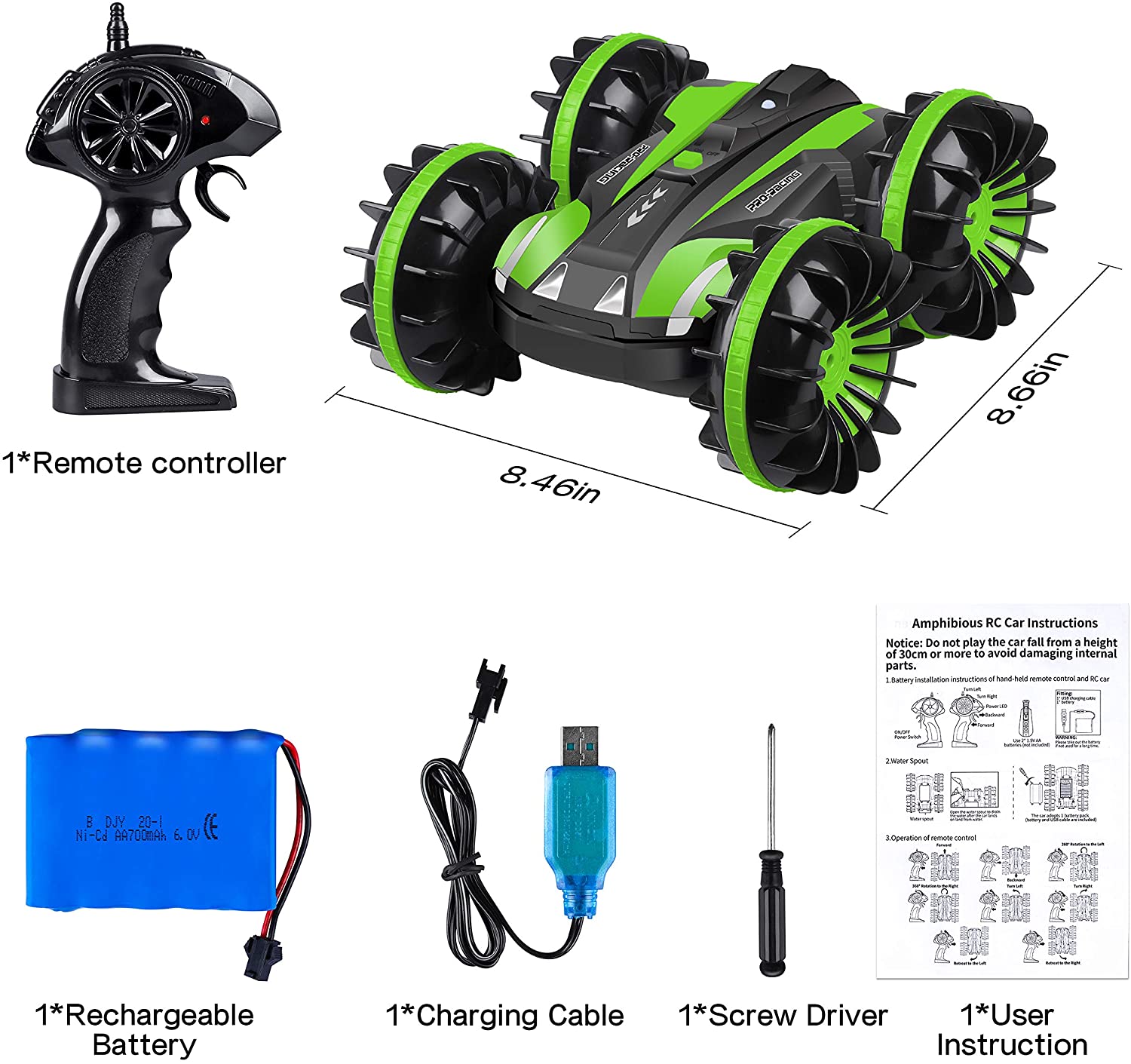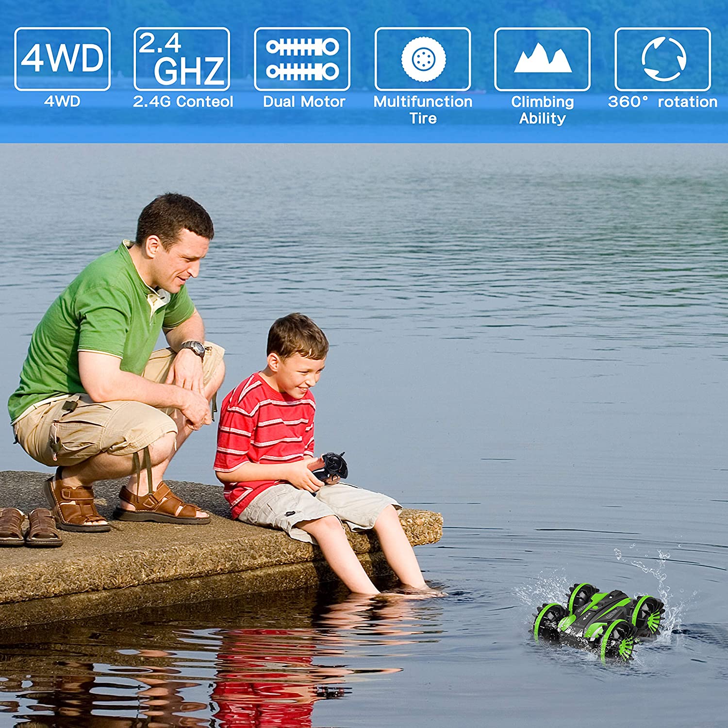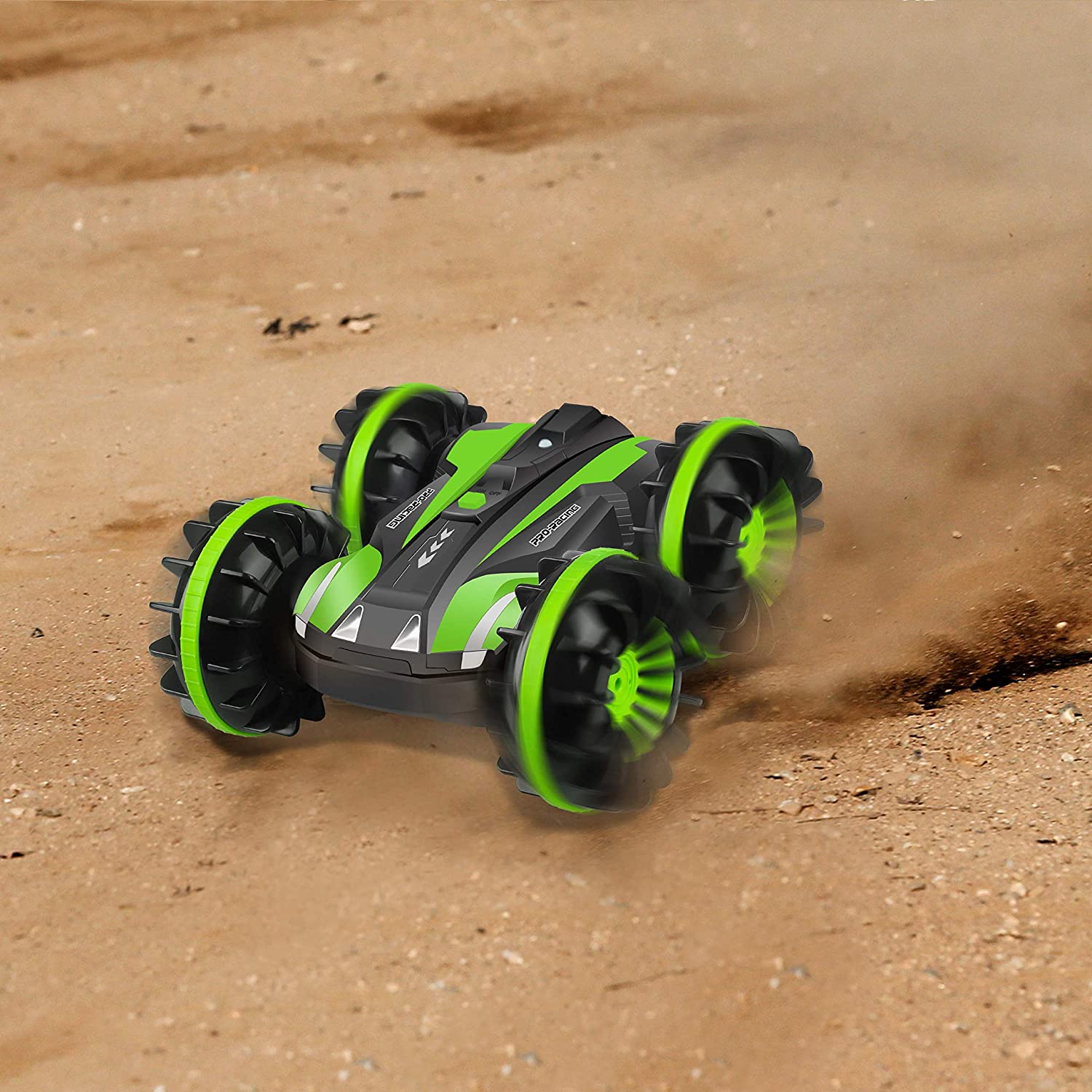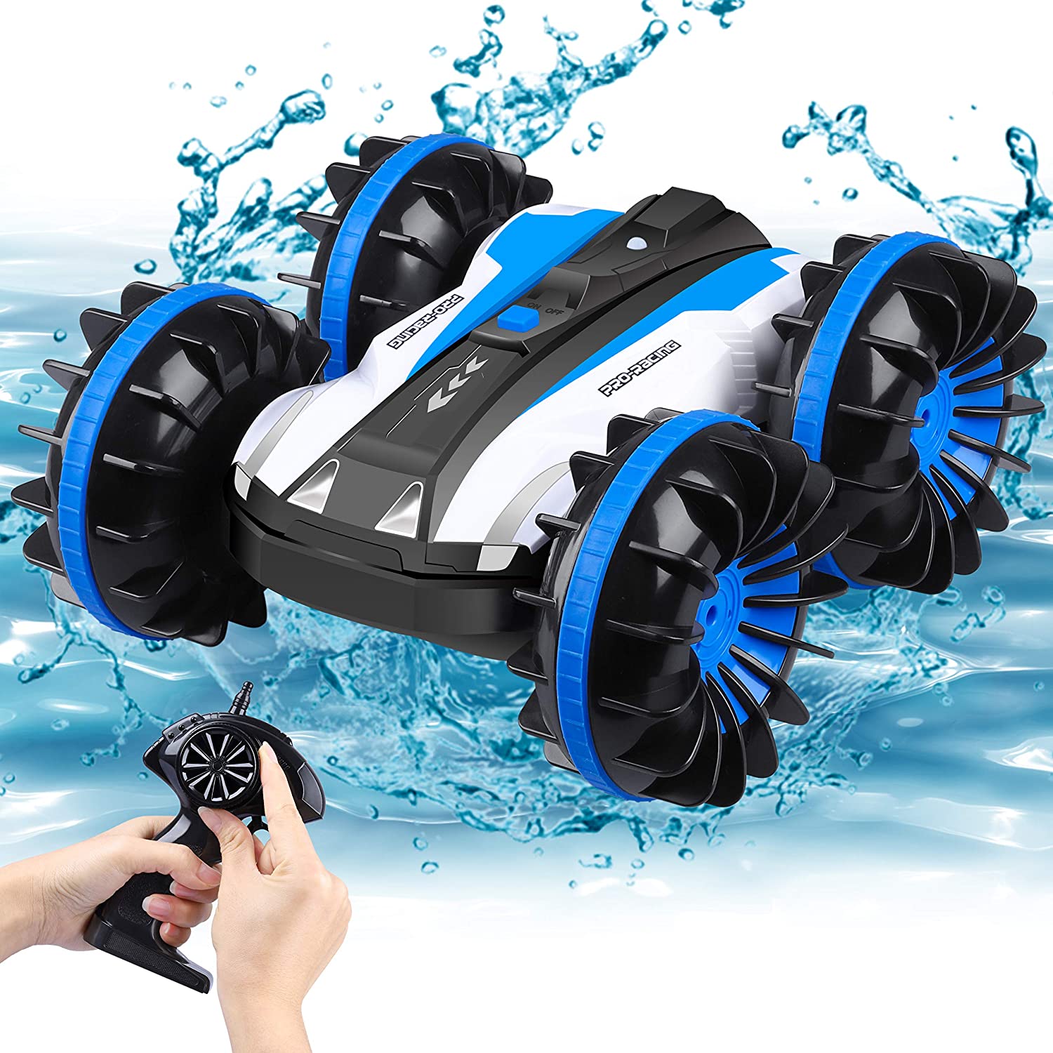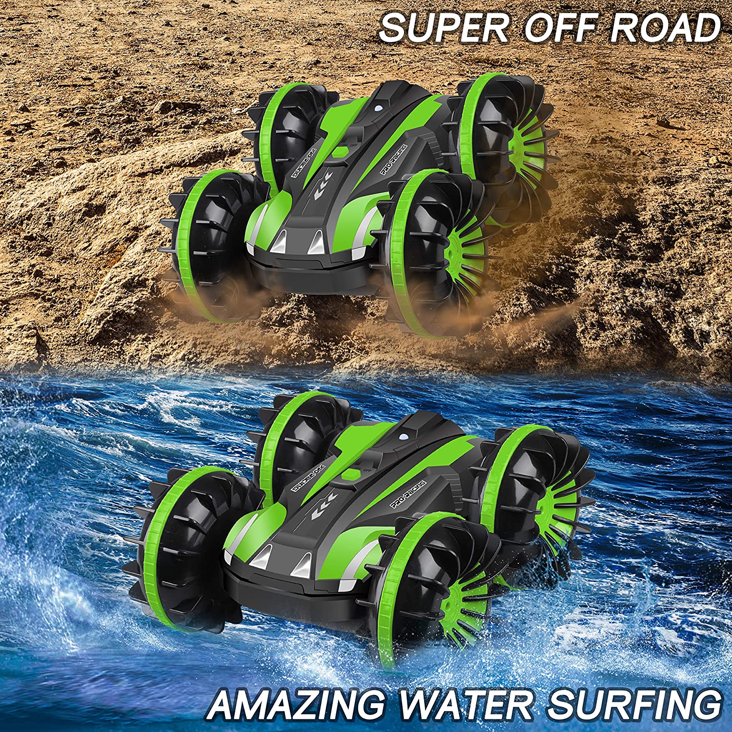 YEZI Amphibious RC Car for Kids 2.4 GHz 4WD Remote Control Boat Waterproof RC Monster Truck Rotate 360° Spins & Flips, All-Terrain Stunt Car Beach Pool Toys Gifts for Age 5-12 Teens Boys Girls Adults